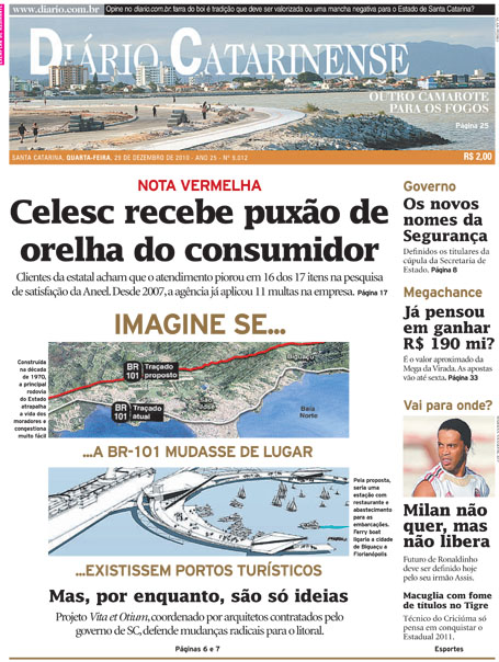 O governo do Estado investiu R$ 1 milhão do Fundo Estadual de Incentivo ao Turismo para um estudo que reavalia a ocupação do litoral catarinense. O projeto, elaborado por um grupo de 40 arquitetos do Instituto Silva Paes, de Florianópolis, propõe alterações audaciosas, como a mudança do traçado da BR-101, a construção de um aeroporto internacional em Tijucas e um porto náutico flutuante.